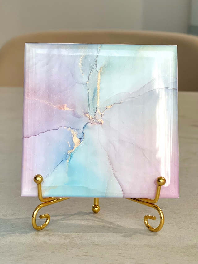 ミニミニアートパネル(イーゼル付、ラメ入りレジン)くすみパステル大理石風