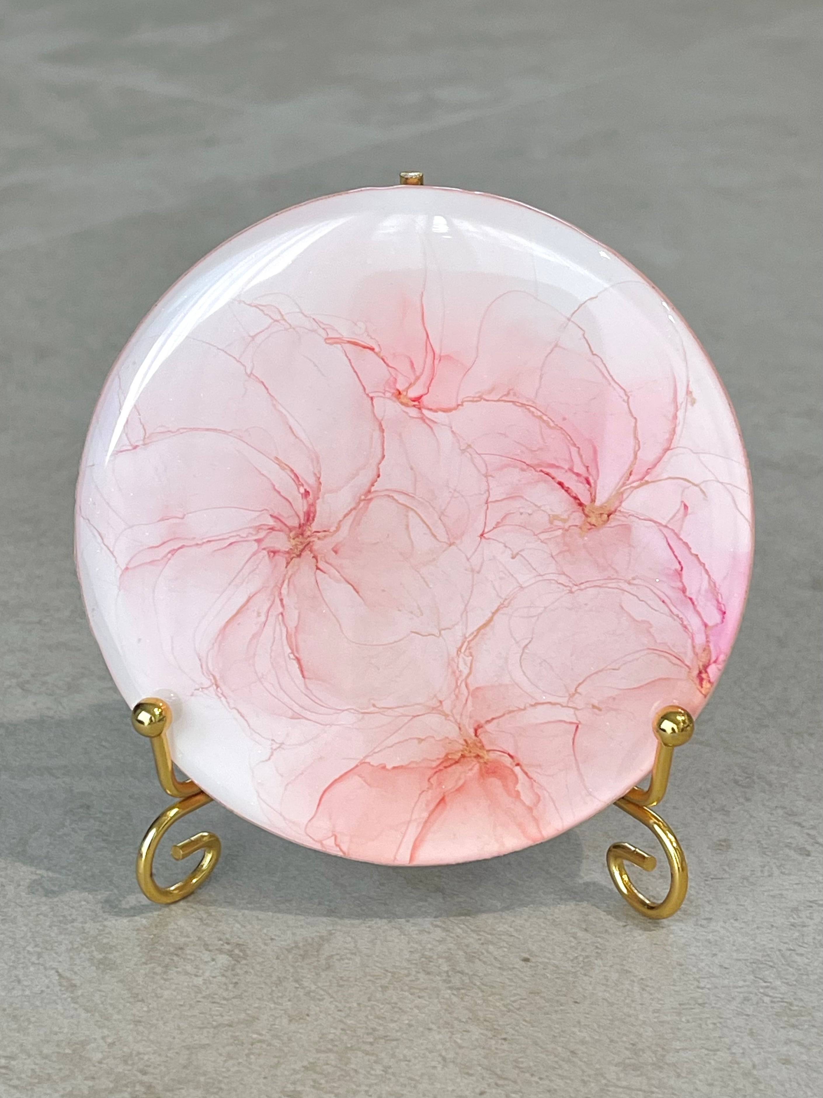 ミニミニアートパネル(イーゼル付、ラメ入りレジン)ペールピンクブーケ