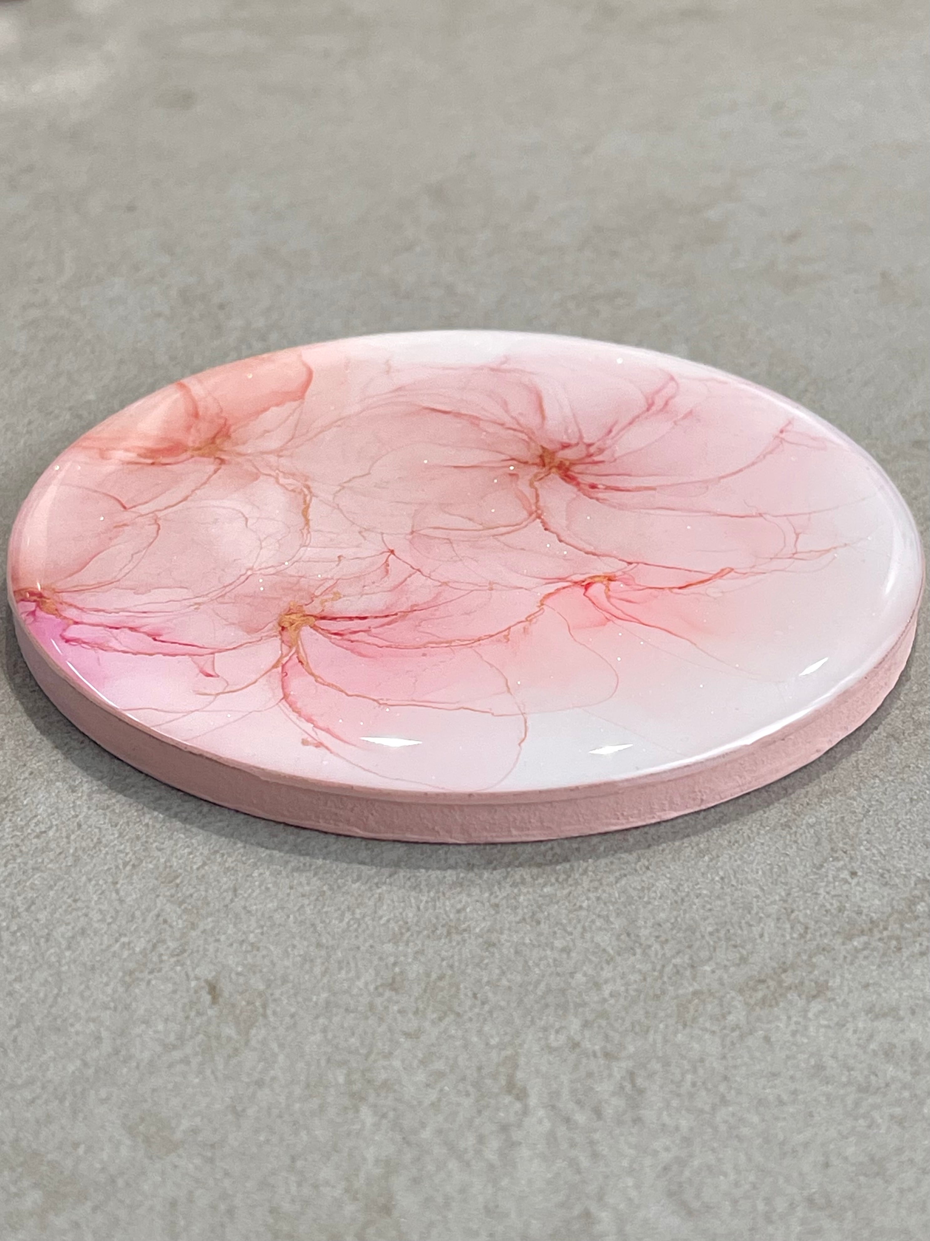 アルコールインクアートとは、アルコールインクを紙などに垂らし、にじみ合うインクをアルコール液と風で動かし、偶然出逢う色味やデザインを楽しむことの出来る一期一会のアートです。